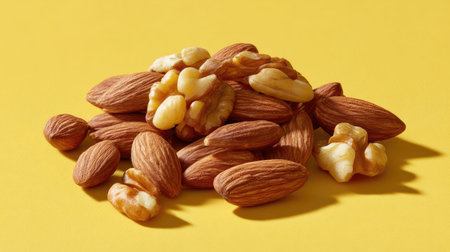 Fresh nuts on a yellow background