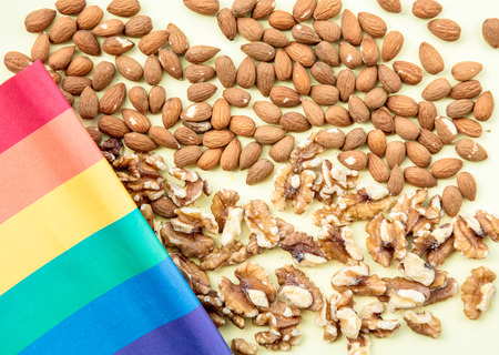 Healthy lifestyle, vegetarian food. Nuts. Studio Photo