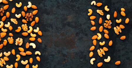 Assorted nuts on darck background. The concept of healthy eating. Close-up, copy space