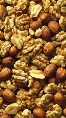 This image showcases a vibrant pile of mixed nuts featuring almonds and walnuts, perfect for promoting healthy eating and nutritious snacking options.