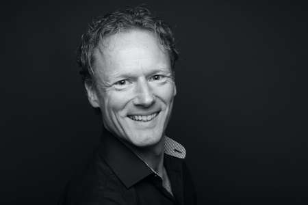 A man on a dark background. With furrowed brows. With thoughts of a difficult future.