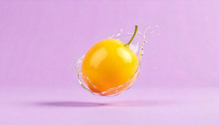 Bright yellow pear amidst a water splash, isolated studio