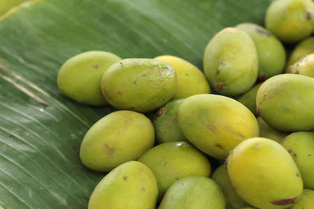 Thai fruit yellow jacket sour sweet taste on banana leaf