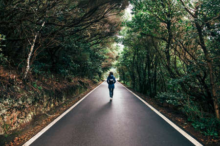 Go somewhere youve never been before. Rearview shot of an unrecognizable woman walking to the woods.