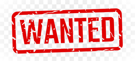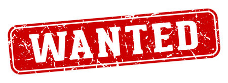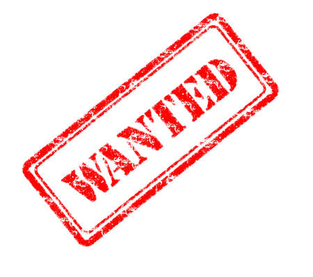 The image features a red rubber stamp with the word 'WANTED' prominently displayed in capital letters. The stamp is pressed onto a light beige or cream-colored paper background. The stamp has a distressed, worn appearance, adding to its vintage feel.