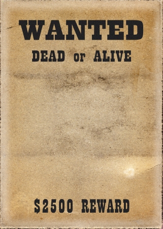 Old western style wanted poster nailed to a plank fence with blank space for copy