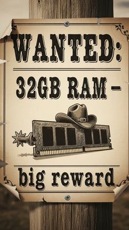 Global ram memory shortage crisis - humorous wanted poster concept for tech industry.