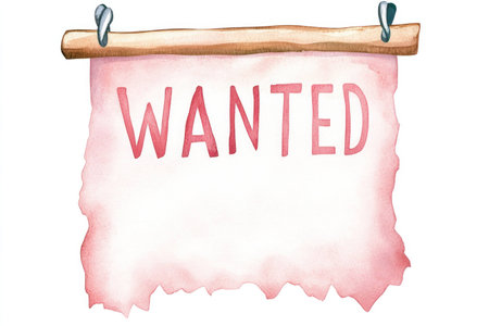 A whimsical watercolor illustration of a WANTED poster, prominently displayed with a blank space, ideal for creative projects and design use