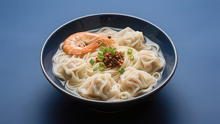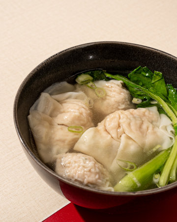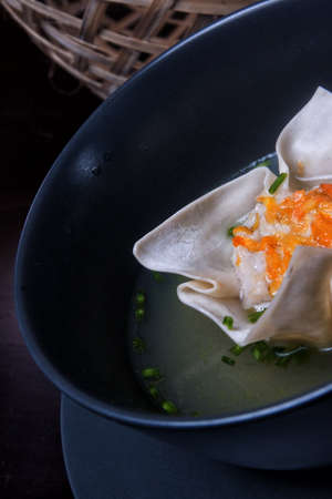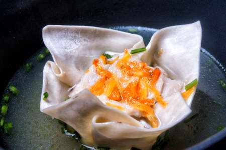 Close-up of delicious Cantonese style shrimp wontons
