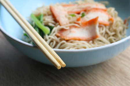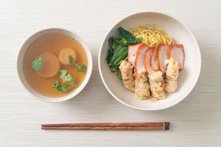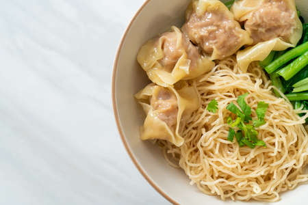 dried egg noodles with pork wonton or pork dumplings without soup Asian food style