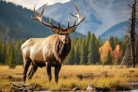 Bull Elk in Yellowstone National Park, Wyoming, United States of America, ellowstone National Park, Bull Elk near Mammoth, AI Generated