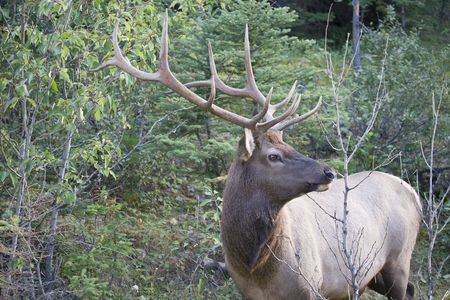 Bull Elk foraging in Jasper National Park, Alberta, Canada.