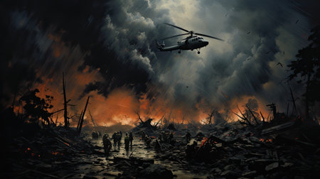 A powerful image capturing the aftermath of a war, depicting scenes of devastation and destruction.