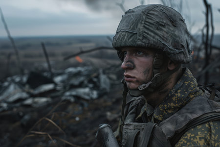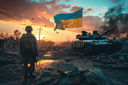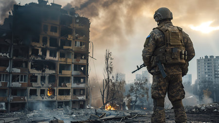 Ukraine War: Lone Soldier Amidst Ruins AI Generated