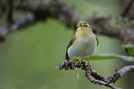 Leaf Warbler perching on a tree and looking into camera