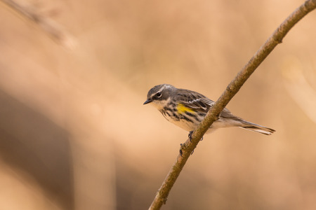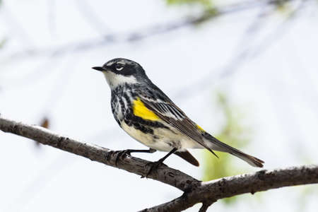 A Yellow-rumped Warbler perched on a branch during spring migration.