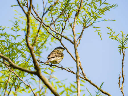 Kirtland warbler perched on a tree in the forests of Michigan USA