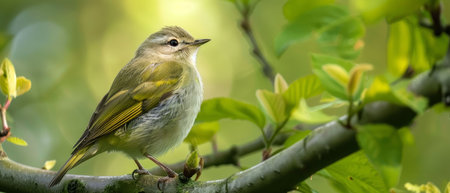 Little Bird on a Branch Tranquil Wildlife Portrait With Soft Bokeh And Gentle Glimmers