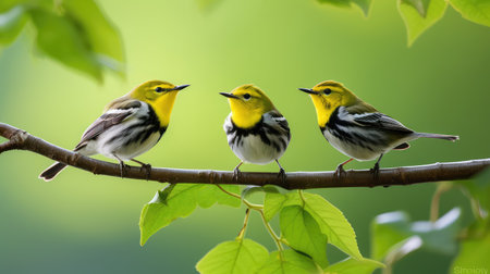 Vibrant warbler perched among blooming dogwood blossoms in springtime