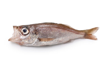 Close-up view of a freshwater fish swimming in a beautiful lake during early morning hours with soft sunlight illuminating its scales