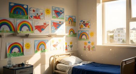 A peaceful sunrise fills a hospital room with warm hues symbolizing hope and new beginnings as the New Year dawns.