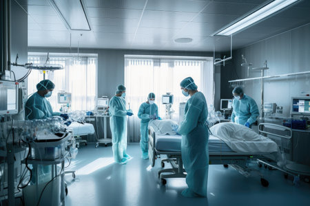 hospital, with team of doctors performing stem cell transplant, created with generative ai