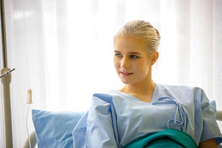 Portrait of female patient in clinic or doctor talk with women patient in hospital