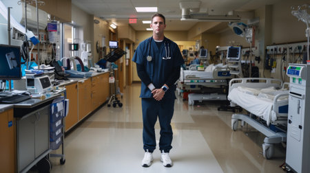 Medical professional standing in hospital emergency room