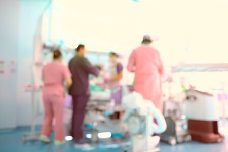Medical team provides emergency care to the critical patient in the emergency room, unfocused background.