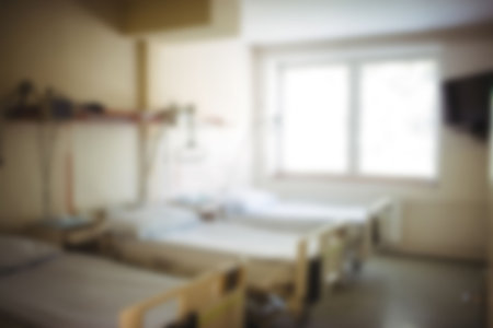 Blurry empty hospital room with bed