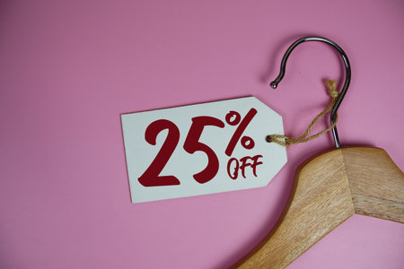 Sale 25% off price tag label with Clothes hanger Clothing Promotion shopping concept
