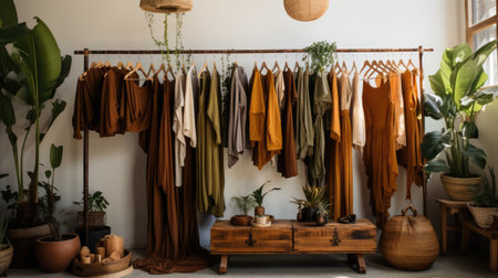 Discover the essence of style with this moody shot of hanging garments, emphasizing texture and elegance in minimalism. Perfect for fashion enthusiasts. Generated A.I.
