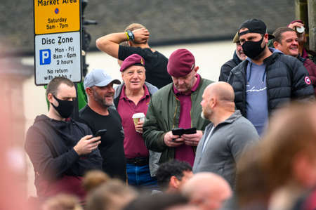 Richmond, North Yorkshire, UK - June 14, 2020: Ex servicemen anti BLM protesters at a Black Lives Matter protest in Richmond, North Yorkshire