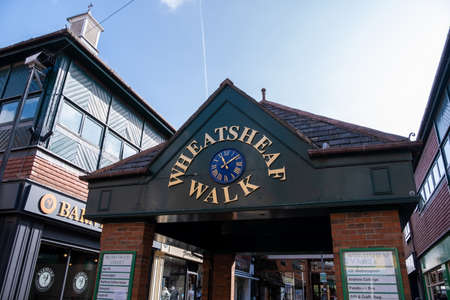Sign and clock for Wheatsheaf Walk in Ormskirk Lancashire September 2020