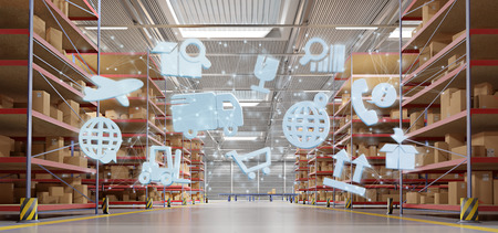 View of a Logistic organisation on a warehouse background 3d rendering