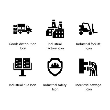 Goods distribution, Factory, Forklift, Industrial safety, Industrial rule, Industrial sewage, icon
