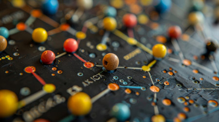 Abstract network of colorful pins connected by lines, representing communication, collaboration, and connection.