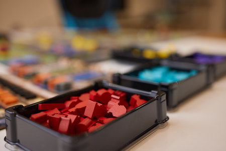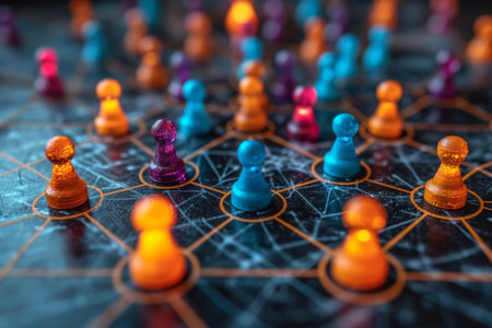 Colorful game pieces stand out on a vivid board, inviting players of all ages to engage in competitive spirit and strategic thinking during game night.