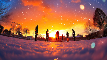 Golden Hour Rainbow with Snowflakes and Silhouettes