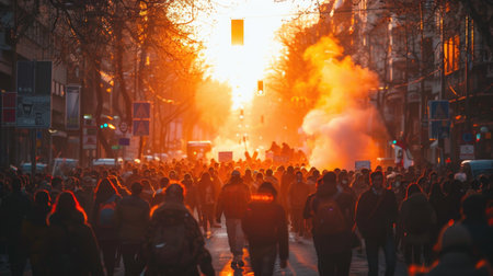 Urban turmoil, street riots civil unrest and societal tensions, chaos and intensity of public protest and demonstration in the heart of the city