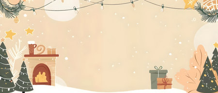 A delicate and charming Christmas themed doodle border design with a minimalist style The features simple line drawings of twinkling string lights star shapes and a cozy fireplace against a soft