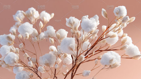 This captivating arrangement of delicate white flowers features soft textures against a gentle pink backdrop, ideal for enhancing various decorative themes.
