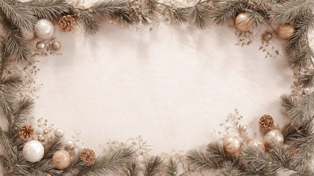 Stylish minimalist Christmas background with neutral tones and copy space.