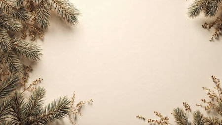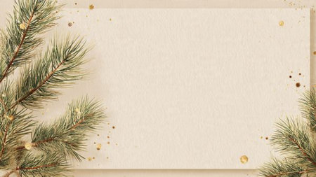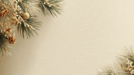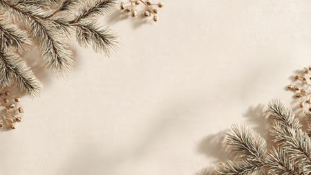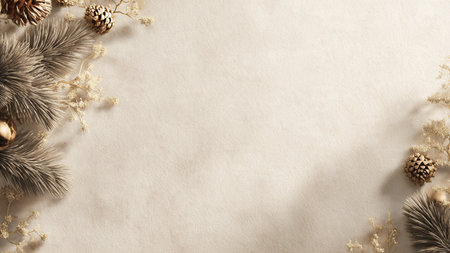 Clean festive background with natural tones and minimal pine detailing.