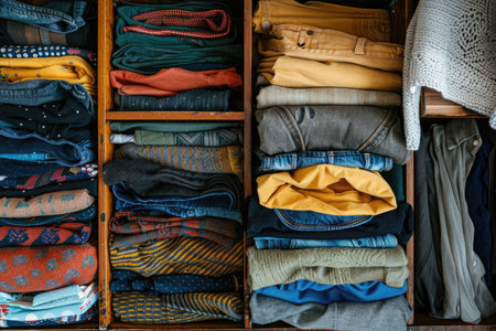 Organized Wardrobe Drawer Showcasing Neatly Folded Clothing and Various Shades of Jeans AI