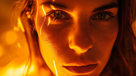 a close up of a woman with glowing eyes