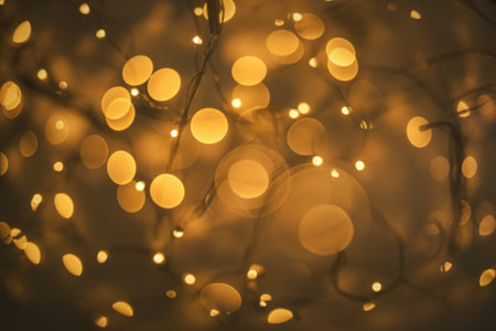 Defocused string lights create dreamy bokeh effect. Adding ambient glow to photography and backgrounds.