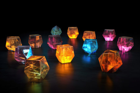 glowing platonic solids on a dark backdrop, created with generative ai