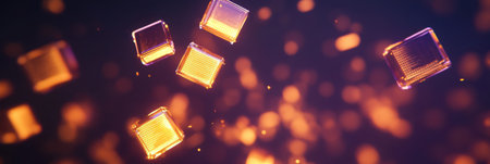 3D render of glowing cubes on dark