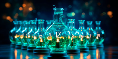 Glowing spheres in an abstract background creating a magical atmosphere with glittering particles